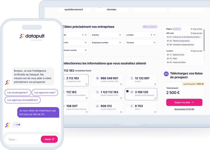 Que vous soyez une micro-entreprise en pleine croissance, une PME cherchant à optimiser sa prospection, ou une grande entreprise en quête d’innovation data, Datapult a la solution adaptée à vos besoins :